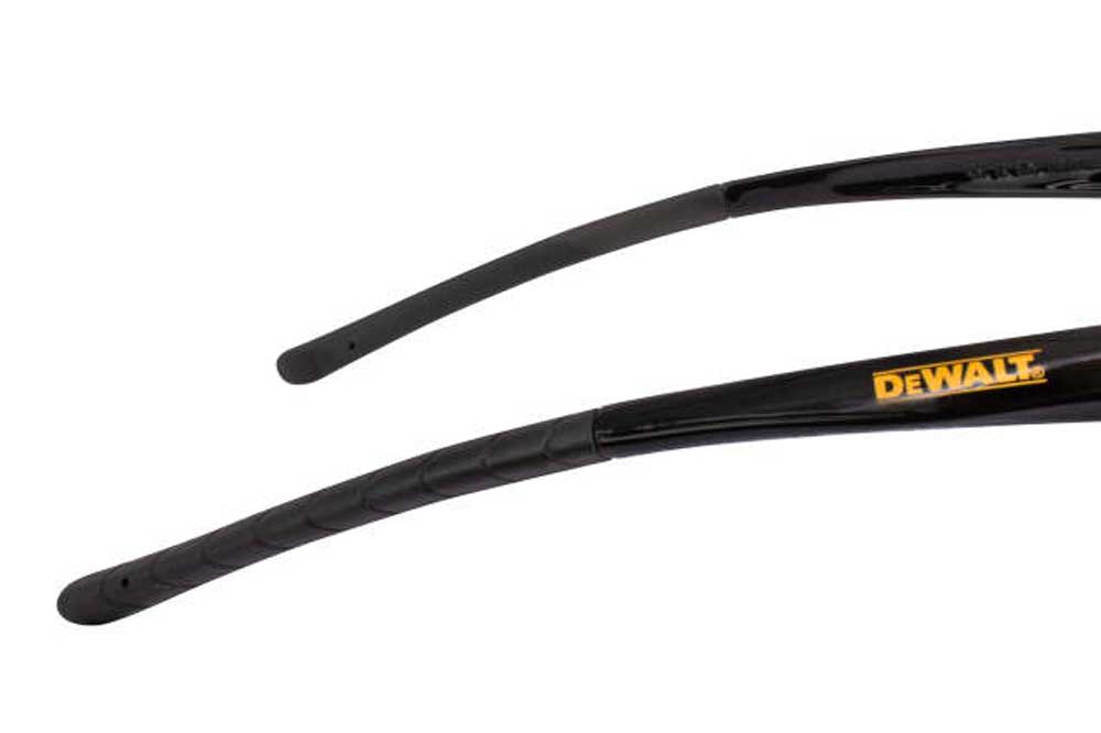 Die Brillengläser der DeWALT Sicherheitsbrillen sind mit Polycarbonat-Schutzscheiben ausgestattet und verfügen über 99.9% UVA/UVB Schutz.