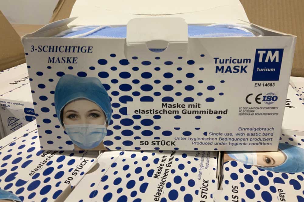 Turicum 3-schichtige Maske mit elastischem Gummiband, 50 Stück in Box