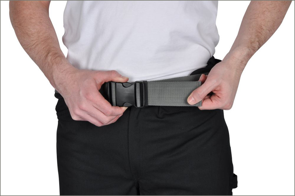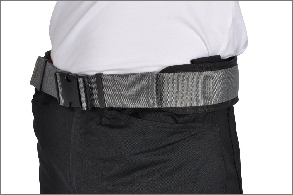 Einstellbarkeit: Der Gürtel ist stufenlos verstellbar, um eine individuelle und sichere Passform für verschiedene Körpergrössen zu gewährleisten.
