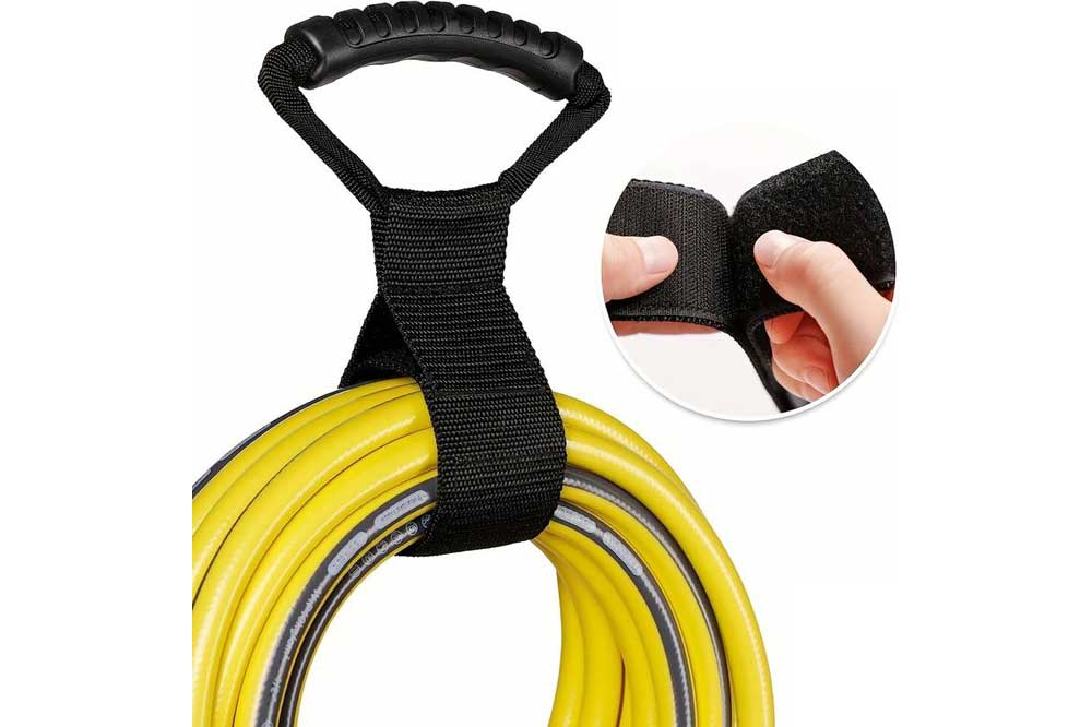Klettband-Gurt speziell für Schläuche und Elektrokabel. Bringen Sie Ordnung in dieses Chaos von Schläuchen und Kabeln, indem Sie diese einfach mit diesem Klettband-Gurt zusammen „schnüren“ und dann direkt an einem geeigneten Ort aufhängen. Dank des integrierten Handgriffs lässt sich somit der Schlauch / Kabel ganz einfach von A nach B tragen.