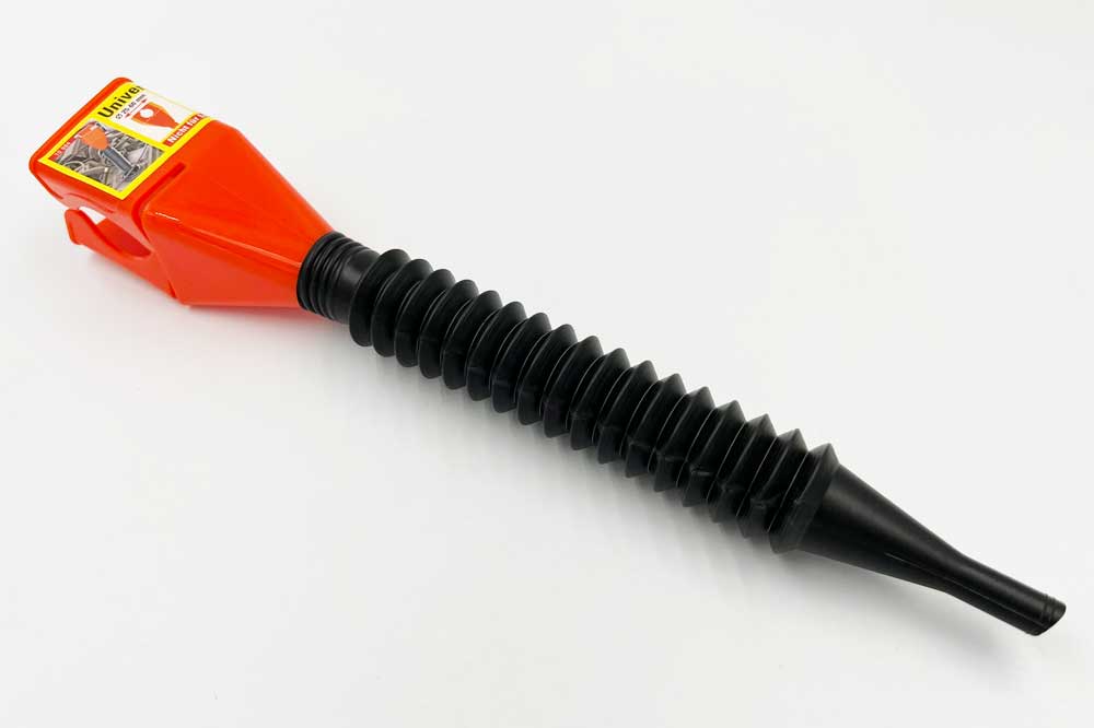 Universal Trichter mit Einfüllhilfe mit ausziehbarem flexiblem Schlauch. Beständig gegen Benzin, Diesel, Öl, Reinigungskonzentrate, Frostschutzmittel und Kältemittel. Kann auf die meisten handelsüblichen Kanister und Flaschen geklemmt werden.