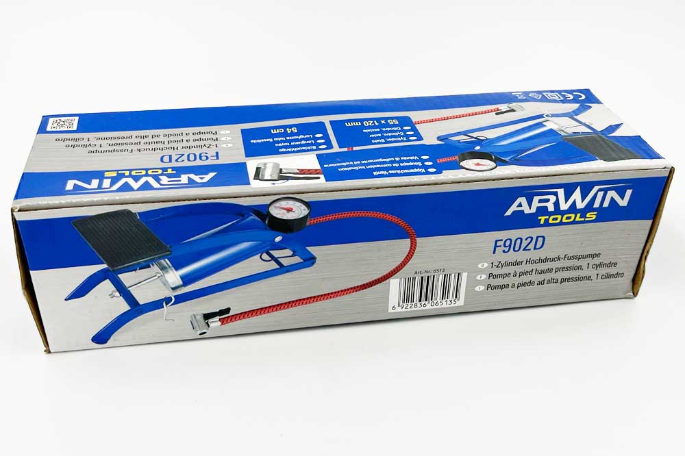 ARWIN 1-Zylinder Fusspumpe – für das Befüllen von Fahrradpneus, Bällen uvm.