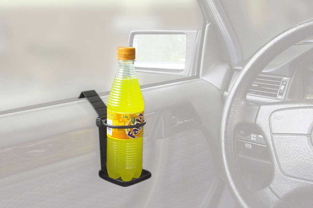 Platzsparender Getränkehalter zur Befestigung an der Seitenscheibe, am Handschuhfach oder an den Kopfstützenstreben von Fahrzeugen. So haben Sie während der Fahrt Ihre Erfrischungen immer griffbereit.