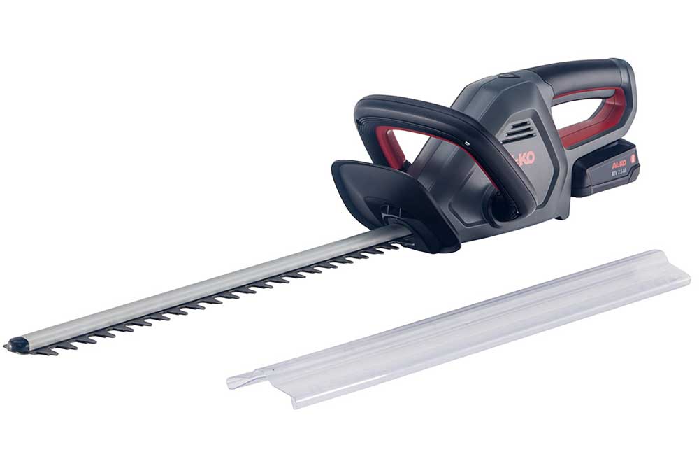 Mit der kabellosen Heckenschere AL-KO HT 1845 samt diamantgeschliffenem Messer geht Ihnen das Heckenschneiden leicht von der Hand – ob als turnusmässige Pflichtübung oder der gezielten Gestaltung Ihrer Gartenzierde. Dabei sorgt das hochwertige 45-cm-Sicherheitsmesser für einen zügigen und präzisen Schnitt mit optimalem Schutz für Mensch und Gerät. Die sehr leichte und netzunabhängige Akku-Heckenschere ermöglicht Ihnen einen bequemen Aktionsradius ohne Kabelwirrwarr und schliesst die Gefahr aus, ein Elektrokabel unabsichtlich zu durchtrennen. Für eine leichte Handhabung zum sicheren, bequemen Arbeiten in jeder Position sorgt der ergonomisch geformte Handgriff. Die HT 1845 wird von einem AL-KO 18 V BOSCH HOME AND GARDEN COMPATIBLE Akku gespeist. Bei Bedarf betreiben Sie mit diesem Akku-System unterschiedliche AL-KO Geräte mit ein und demselben Akku – und sparen bares Geld. Der beiliegende Köcher dient zur geräteschonenden Aufbewahrung der Heckenschere.
