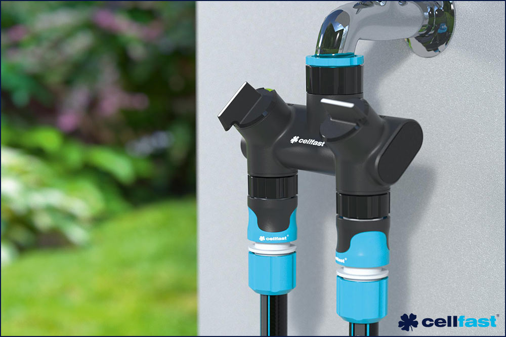 cellfast 53-220 2-Wege-Verteiler mit Innengewinde und Schnellverschluss-Nippel ENERGO G1/2 Zoll, G3/4 Zoll, G1 Zoll