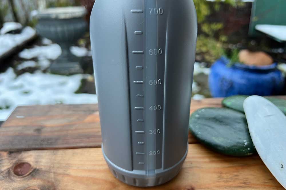 Das ergonomische Design dieser Flasche sorgt für einen bequemen Griff und dank der transparenten Niveaulinie – 0 bis zu 700 ml, sehen Sie jederzeit die Flüssigkeitsmenge in der Flasche. Hervorragend gegen Chemikalien beständig. Sprühkopf einstellbar vom kompakten Sprühstrahl bis zur Feinzerstäubung. Funktioniert auch über Kopf.