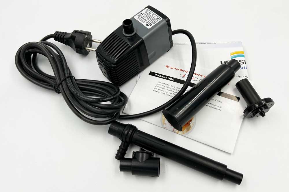 INDOOR Springbrunnen-Pumpe HSP600-i, für den Betrieb von Wasserspielen, Teichschalen, Teichfiguren, Mini-Quellsteinen und Zimmerbrunnen in Gebäuden. Die enthaltenen Wasserspiele, das verlängerbare Teleskop-Steigrohr und ein Teichfigurenanschluss lassen Ihnen alle Möglichkeiten offen, um Ihrer Kreativität freien Lauf zu lassen. Eine Figur kann anstatt der Wasserspiele am Steigrohr angeschlossen werden. Ihre kleine, beruhigende Wohlfühloase im Wohnzimmer oder im Wintergarten wird mit der Heissner SMARTLINE INDOOR Springbrunnen-Pumpe HSP600-i gleich noch gemütlicher! Denn Sie können das praktische, winterfeste, leicht zu wartende ALL-IN-ONE Einsteiger-Set ganz nach Ihren Wünschen zusammenbauen. Egal, ob Sie sich für den glockenförmigen oder den Kaskadenaufsatz entscheiden, das praktische Teleskoprohr mit einbauen oder eine Teichfigur mit integrieren möchten – Sie haben die Wahl und können Ihre Vorstellungen ganz einfach umsetzen!