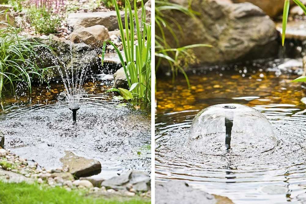 - Lieferumfang: Springbrunnen-Pumpe, Teichfigurenanschluss, ausziehbares Teleskop-Steigrohr, 2 Wasserspielaufsätze (Glocke + Kaskade), 3 Meter Netzkabel