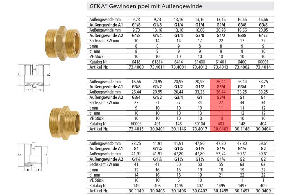 Schlagwörter: Aussengewinde 3/4 Zoll, GEKA, Gewindenippel