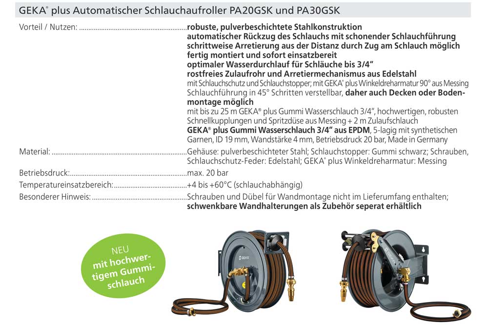 Schreiben Sie die erste Rezension für „GEKA plus PA30GSK Automatischer Schlauchaufroller mit 3/4 Zoll Schlauch 25 Meter“ Antwort abbrechen