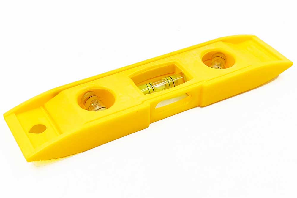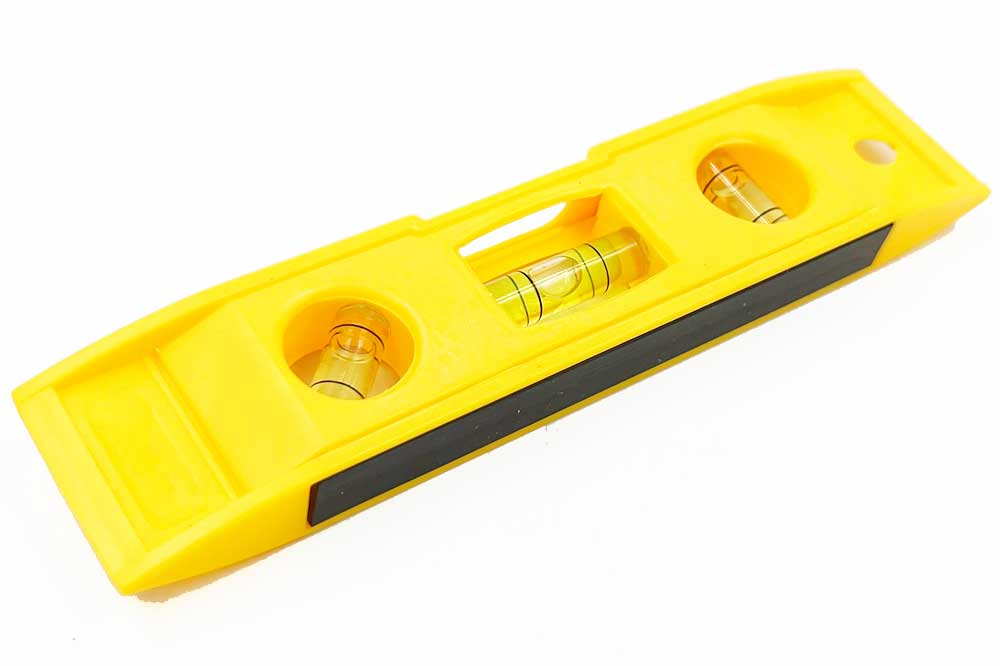 Leichte Kunststoff-Richtwaage mit drei Libellen und integrierter Magnetleiste auf der Unterseite.