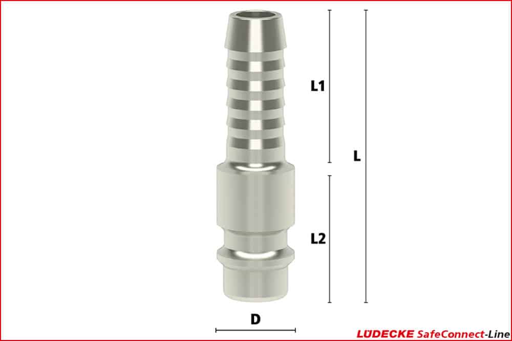 LÜDECKE ESI 8 SS Stecknippel DN 7.8 mit Schlauchtülle, freier Durchgang