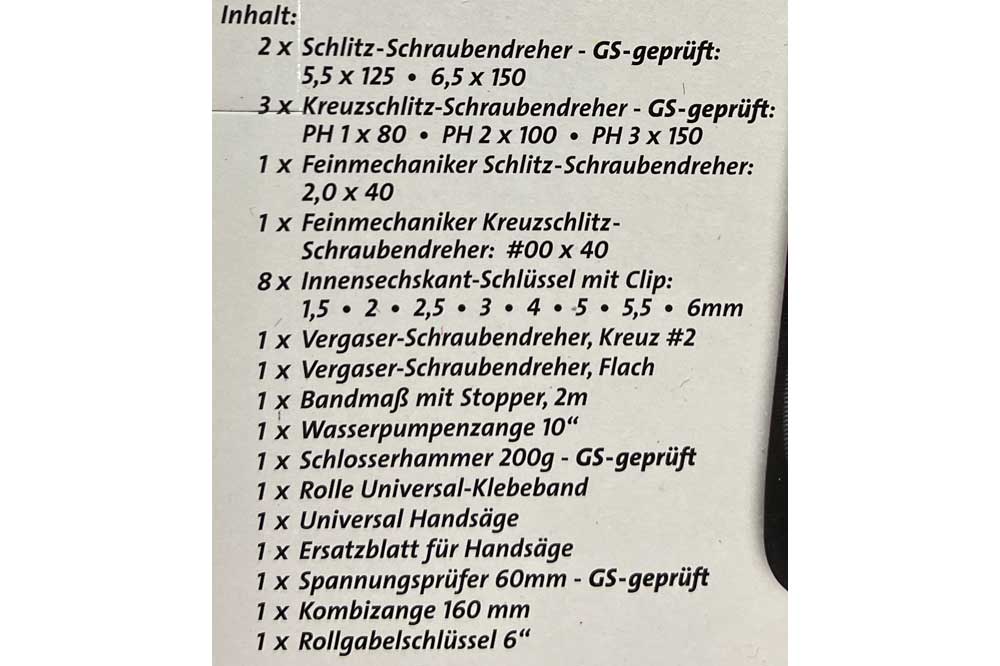 Werkzeugmappe 26-teilig mit den wichtigsten Werkzeugen für die unterschiedlichsten Anwendungen.
