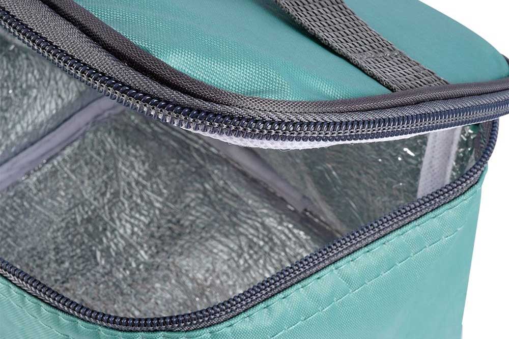 Eine praktische und bequeme Kühltasche zum Transport von Speisen und Getränken. Die Innenseite der Tasche ist vollständig mit thermoisolierendem Material ausgekleidet, dank dem sich Produkte an heissen Tagen nicht aufheizen und länger frisch bleiben. Abschliessbar mit Zwei-Wege-Reissverschluss. Die Tasche hat die Masse von 21 x 15 x 15 cm und ein Fassungsvermögen von 4 Litern.