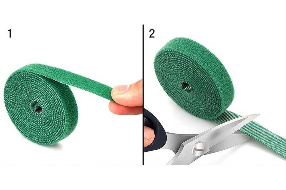Klettband wird einfach auf die gewünschte Länge abgeschnitten und um die zu befestigen Gegenstände gewickelt.
